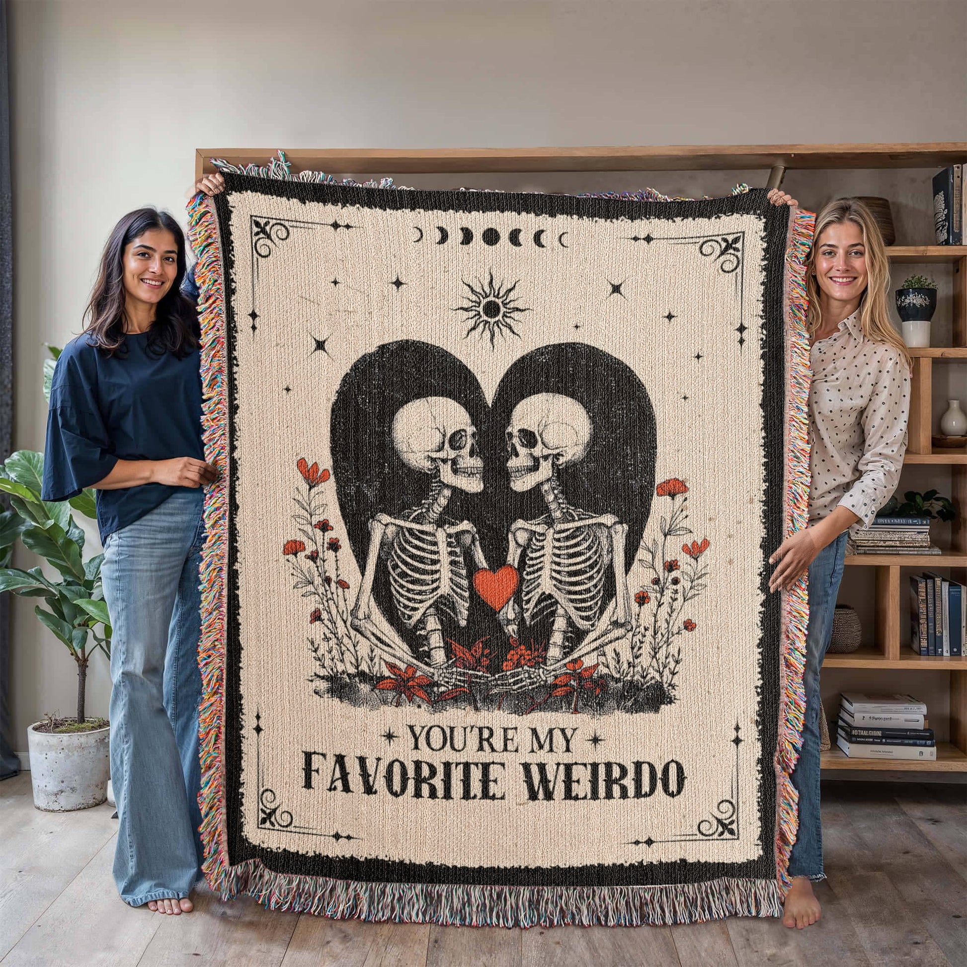 Real love isn’t perfect — it’s weird, loyal, and full of laughter. Wrap your partner in warmth (and sarcasm) with this one-of-a-kind Favorite Weirdo woven blanket.